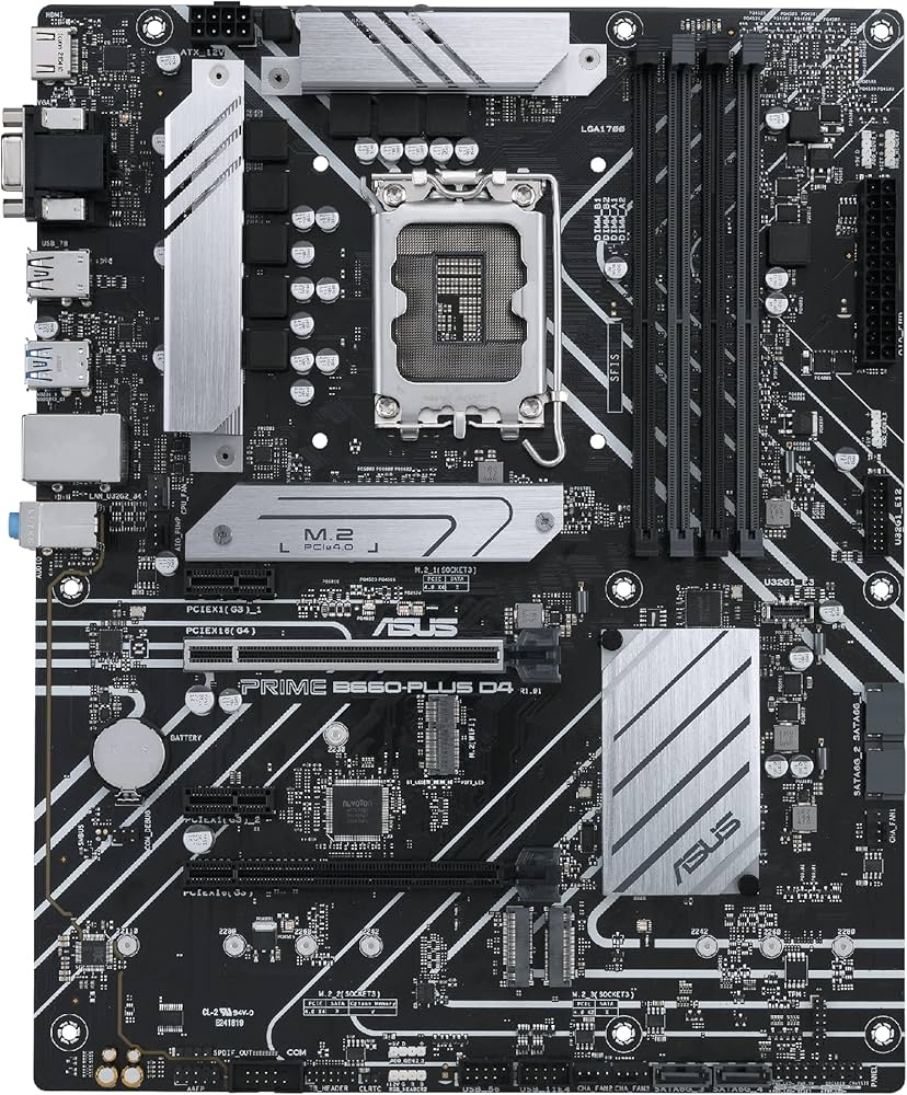 مادربرد ASUS PRIME B660-PLUS D4 DDR4 گزینهای مناسب برای سیستمهای مبتنی بر پردازندههای نسل دوازدهم و سیزدهم اینتل است. این مادربرد با فرم فاکتور ATX طراحی شده و برای سیستمهای حرفهای، گیمینگ و کاربریهای نیمهحرفهای انتخابی قدرتمند محسوب میشود.